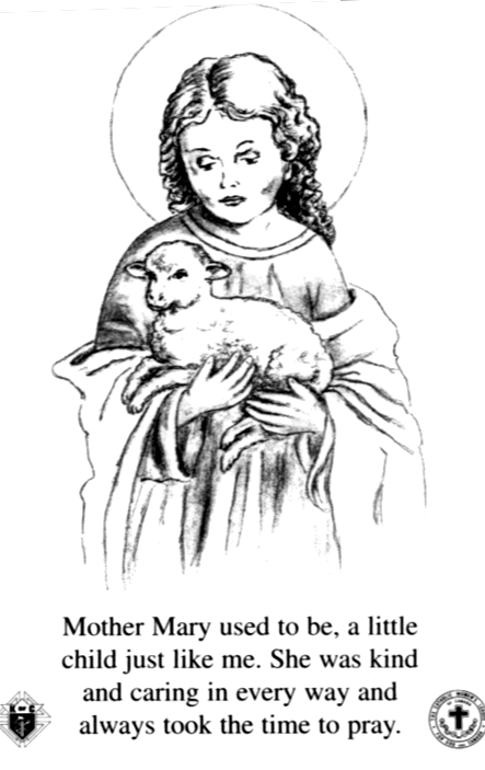 Mother Mary used to be, a little child just like me. She was kind and caring in every way and always took time to pray | |  Jesus, Mary and Joseph are called THE HOLY FAMILY. They loved one another. Prayer: "Jesus, please bless my family today |